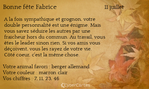 Carte Bonne Fete Fabrice 11 Juillet